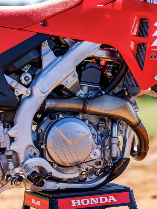 Inspired by our Grand Prix MX machines, Honda's first hydraulically actuated dirt bike clutch offers a 10% lighter clutch lever pull. It eliminates the need for cable adjustments, delivering optimal performance on even the longest motos.