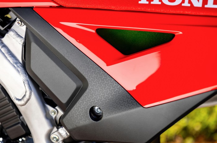 Superior handling starts with an exceptional frame, and the CRF450R delivers. The updated chassis features optimised rigidity and reduces weight, while enhancing responsiveness and stability. Feel the difference in comfort and performance as you take on the track in front of you.