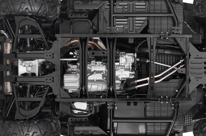 Dual A-arm suspension gives you 266mm of travel in the front and 254mm in the rear. Pair that with stellar ground clearance, and you maximise available traction and superior comfort manoeuvring over terrain other side-by-sides would shy away from.